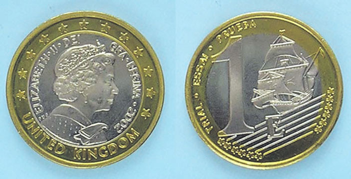 Рис. 8. Биметаллическая «пробная монета» 1 евро Великобритании