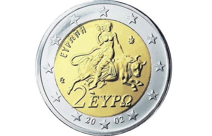 Несколько слов о названии европейских денег. Еще Геродот в V веке до н. э. задавал вопрос о происхождении слова «Европа». Но до сих пор единого мнения по этому вопросу у лингвистов нет. Одни считают, что слово «Европа» происходит из семитских языков и означает «закат солнца». Действительно, Южная и Центральная Европа находятся к западу от Палестины. По другой версии «Европа» означает «широколикая» — символ полной луны и эпитет луны-богини. Сохранились архаические изображения жрицы-луны, восседающей на солнце-быке. В древнегреческой мифологии красавица Европа — дочь Телефассы и финикийского царя Агенора (Телефасса — один из древних эпитетов луны-богини). Принцессу Европу похитил Зевс, который принял вид белого быка и, переплыв Средиземное море, привез ее с Ближнего Востока на Крит, где она родила ему трех сыновей. Греческий остров Крит расположен уже в другой части света; она и получила название Европа. Таким образом, можно считать, что новоизобретение «евро» подчеркивает, что вся европейская цивилизация может считать себя наследницей античной Греции (рис. 13). Символ евро — греческая буква «эпсилон» с двумя параллельными поперечными линиями, символизирующими стабильность объединенной валюты. Правда, у математиков буква «эпсилон» всегда означала бесконечно малую величину, но европейцы, очевидно, за свои евро не боятся — и правильно делают.