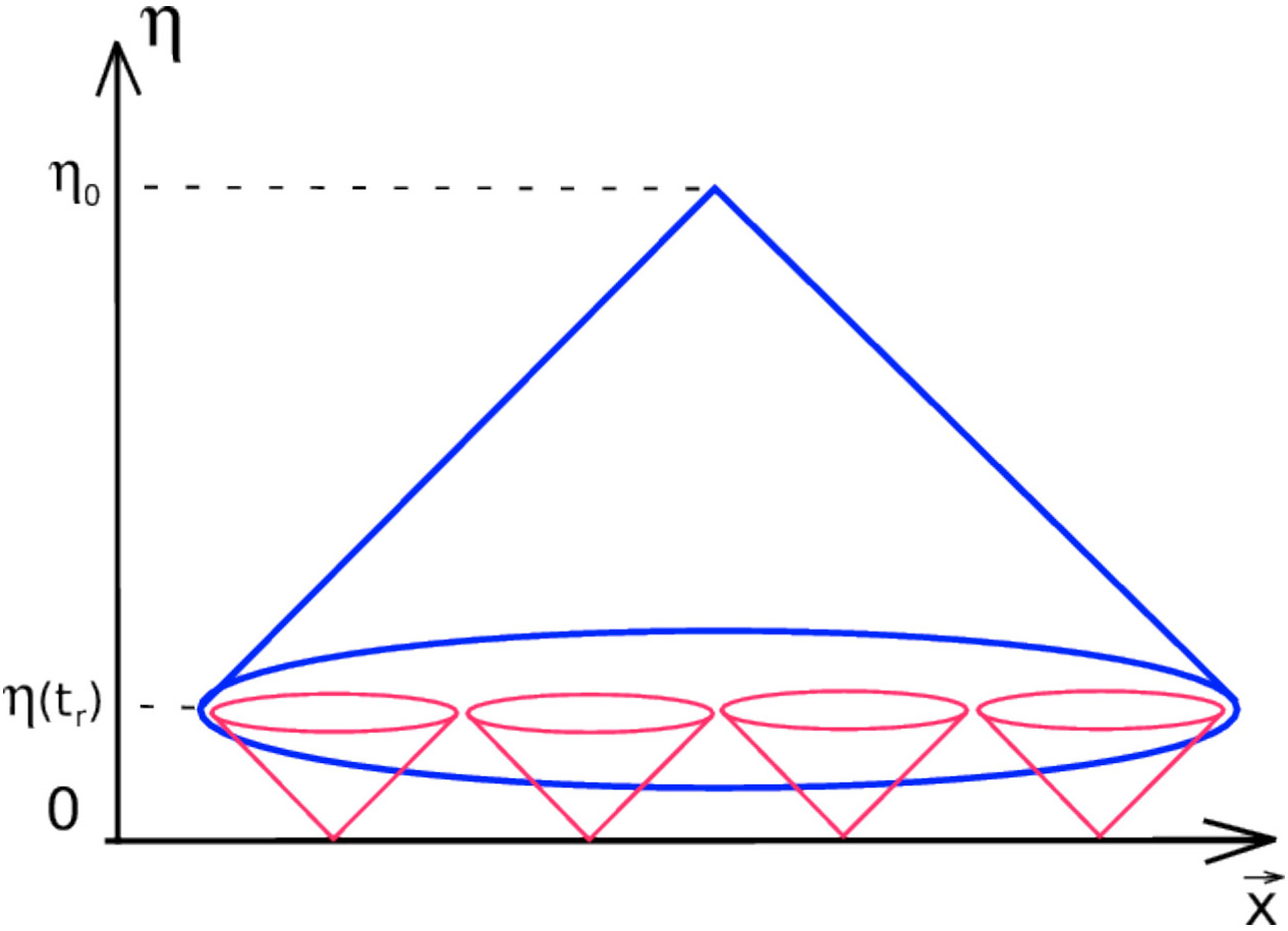 Для нас сейчас это неважно; важно, что время жизни Вселенной с момента Большого взрыва конечно — сегодня это 13,8 млрд. лет. В такой картине сигналы, испущенные в момент Большого взрыва и распространяющиеся с максимально возможной скоростью — скоростью света, — пролетели к фиксированному моменту времени t конечное расстояние. Это расстояние называют размером космологического горизонта: области, находящиеся в момент t на расстоянии, большем этого размера, никак не успели обменяться сигналами, они ничего друг о друге не знают, все физические процессы происходили внутри этих областей независимо.