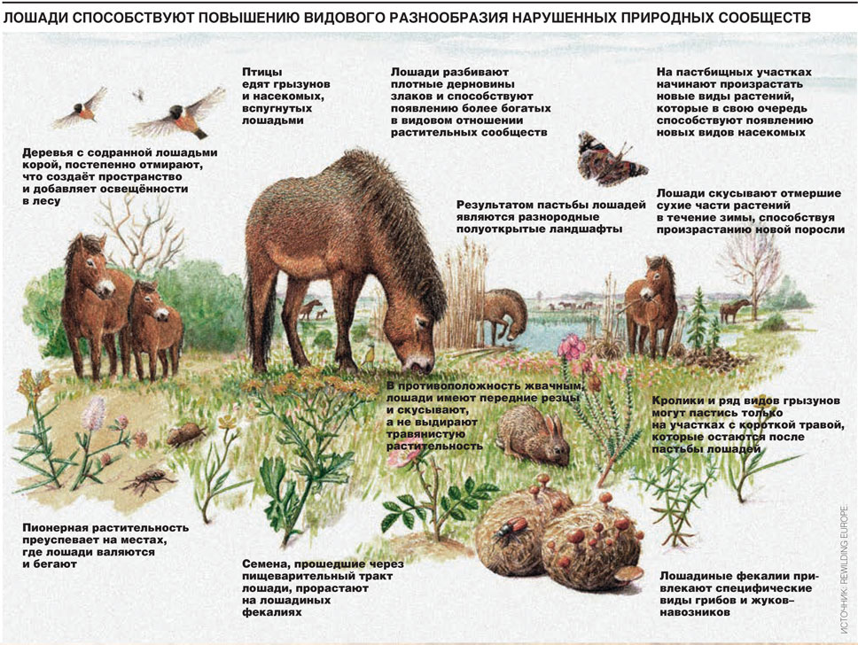 Для ускорения их восстановления не хватает ряда видов животных, и прежде всего копытных. Именно они способны съесть и вытоптать сорную растительность, обогатить почву удобрениями, запустив процессы заселения территорий разнообразными животными и растениями, возвращая их к естественному природному состоянию.