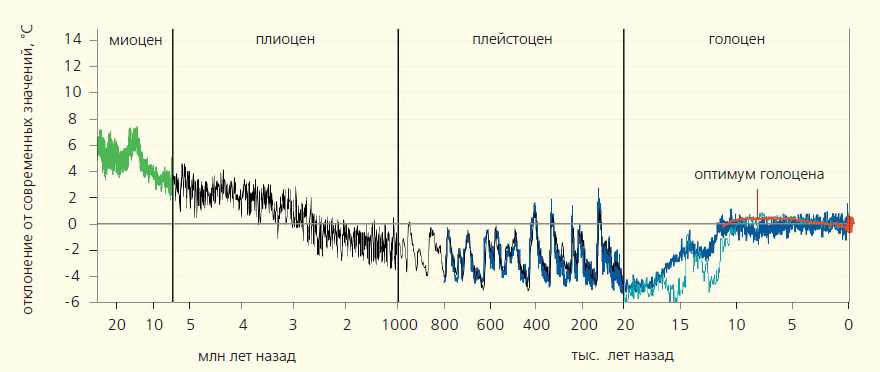 Средняя температура воздуха на Земле от миоцена до наших дней