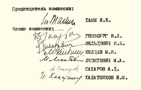 Впечатляет состав научного коллектива, участвовавшего в обосновании характеристик РДС-6с. Шесть будущих нобелевских лауреатов: Тамм, Ландау, Франк, Гинзбург, Семенов, Канторович. Физики-экспериментаторы и математики из Ленинграда, Обнинска, Дубны, Харькова и Москвы. Основатели замечательных научных школ в нашей стране.