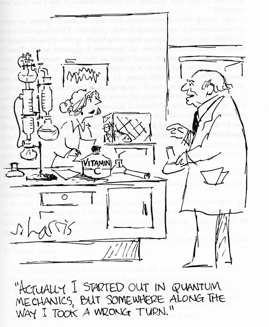Огромные дозы витамина С? Несколько граммов в день, в десятки раз больше принятых норм? Отлично! Это (с обычной своей страстью говорил Полинг) поможет вам избежать простуд, сердечно-сосудистых проблем, а заодно и рака. Ну и, понятное дело, поможет выздороветь, если вы всё-таки ухитрились заболеть.