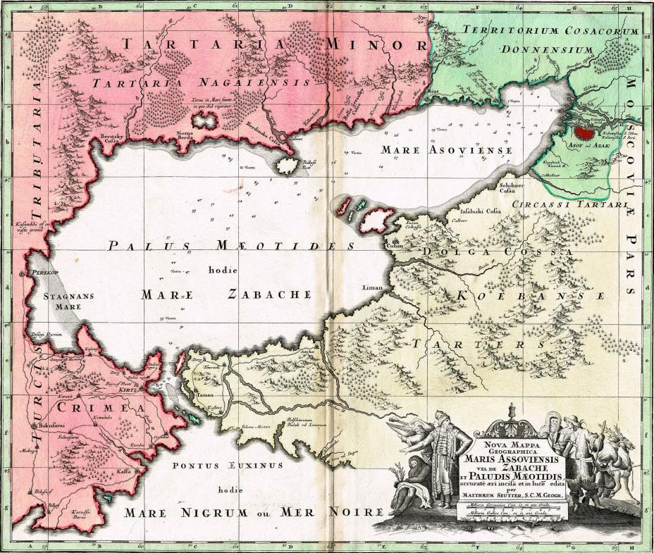 В западноевропейской картографии того времени в низовье Кубани изображены три рукава. Однако на большей части карт первой половины XVIII в. этот район показан искаженно, изображение сильно отстает по своей точности от синхронных османских описаний. К примеру, на карте баварского гравера Георга Матиаса Зойтера (1730 г.) темрюкский и черноморский рукава впадают в неизвестный пролив, отделяющий Тамань от континента [27].