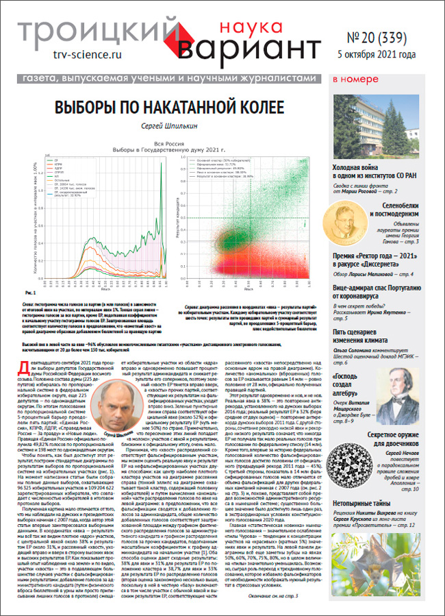 Девятнадцатого сентября 2021 года прошли выборы депутатов Госдумы Российской Федерации восьмого созыва. Правящая «Единая Россия» официально получила 49,82% голосов по пропорциональной системе и 198 мест по одномандатным округам. Чтобы понять, как был достигнут этот результат, построим стандартные диаграммы по результатам выборов по пропорциональной системе на избирательных участках...