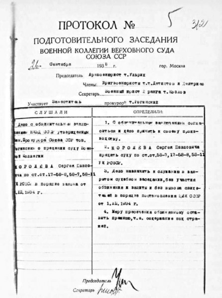 Разберем процитированный фрагмент. Откуда Стариков взял, что Королёв был осужден за «растрату»? Оказывается, в обвинительном заключении по делу № 19908 от 29 мая 1940 года (т. е. в период, когда шло повторное расследование) он нашел такие строки: «В 1936 году вел разработку пороховой крылатой торпеды; зная заранее, что основные части этой торпеды, приборы с фотоэлементами для управления торпедой и наведения ее на цель не могут быть изготовлены Центральной лабораторией проводной связи, КОРОЛЁВ с целью загрузить институт ненужной работой усиленно вел разработку ракетной части этой торпеды в 2-х вариантах. В результате этого испытания четырех построенных КОРОЛЁВЫМ торпед показали их полную непригодность, чем нанесен был ущерб государству в сумме 120 000 рублей и затянута разработка других, более актуальных тем»9. Но ущерб и растрата — это все-таки разные преступления, не так ли?