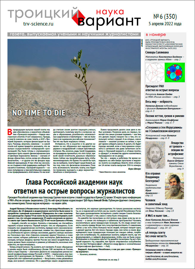 В предыдущем выпуске нашей газеты мы уже обмолвились о вероятном объявлении «Троицкого варианта — Наука» иностранным агентом. И вот свершилось. Правда, в реестр внесена не сама газета, а АНО «Троицкий вариант», которая финансирует ее выпуск. Разница, впрочем, невелика. Интересно, что в соцсетях и по другим каналам на нас обрушился вал народной поддержки и поздравлений с новым престижным статусом. Мы, конечно, рады такой поддержке, но вынуждены признаться, что этот статус, при всей своей почетности, довольно обременителен...