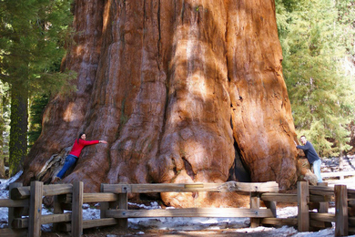 На следующий день поиски рододендрона возобновились на другой стороне озера — северо-восточном склоне кальдеры. Подниматься на гребень пришлось через лес. Мне идти было легче, я не проваливалась на снегоступах, а вот более тяжелый Саша, который шел за мной, вязнул в рыхлом снегу по колено — силы при такой ходьбе тают.