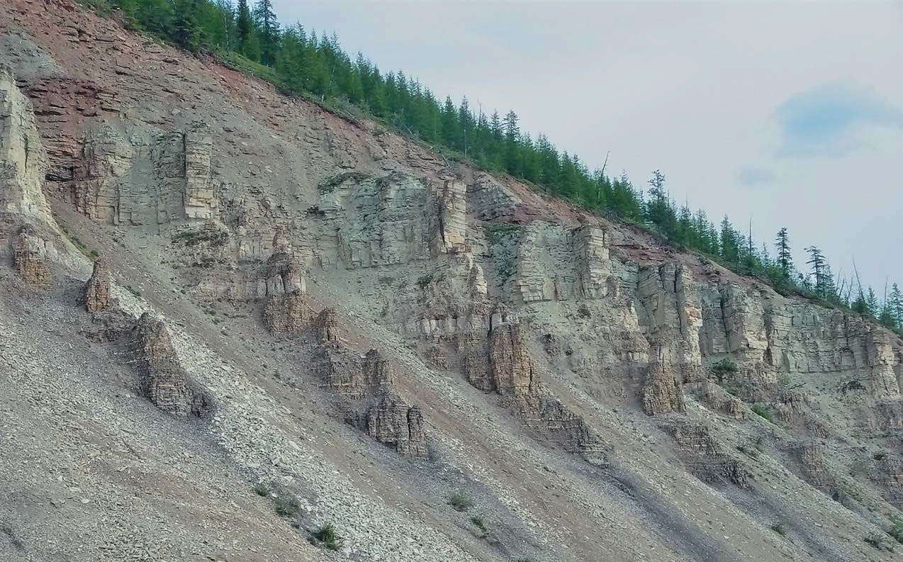 3 августа (четверг). Встали чуть попозже, в 8:00, позавтракали, свернули лагерь и поплыли до устья ручья Мерчимдем. По левому берегу возвышались великолепные скалы с разнообразными башнями, на которых иногда виднелись гнезда ястребов (канюков). Эти чудесные обнажения причудливых форм сопровождали нас почти всё время на пути до Куойки. Вблизи устья Мерчимдема перед скалами выскочил олень, который сначала бежал впереди Сашиной лодки, потом заметался между обеими нашими лодками, но в конце концов ринулся в реку и переплыл на правый берег Оленька. Если бы у нас было лассо и мы умели бы его бросать, наверное, можно было его заарканить. Засмотревшись на скалы и оленя, пропустили устье Мерчимдема по правому берегу и пристали на косу в одном километре от него. Решили здесь остановиться. На косе обычно меньше комаров и мошкары, хотя рядом не было дров, и нам с Сергеем пришлось тащить бревно для костра метров пятьсот. Мы с Сашей пошли к устью Мерчимдема, где в течение часа безрезультатно поочередно бросали спиннинг. Никого не поймали. Ленки были видны, подходили к блесне, но не брали. Затем увидели двух тайменей, которые стояли бок о бок против течения, но тоже шарахались от блесны. Вернулись в лагерь, поставили палатки, купались (вода была теплой), поужинали — и спать.