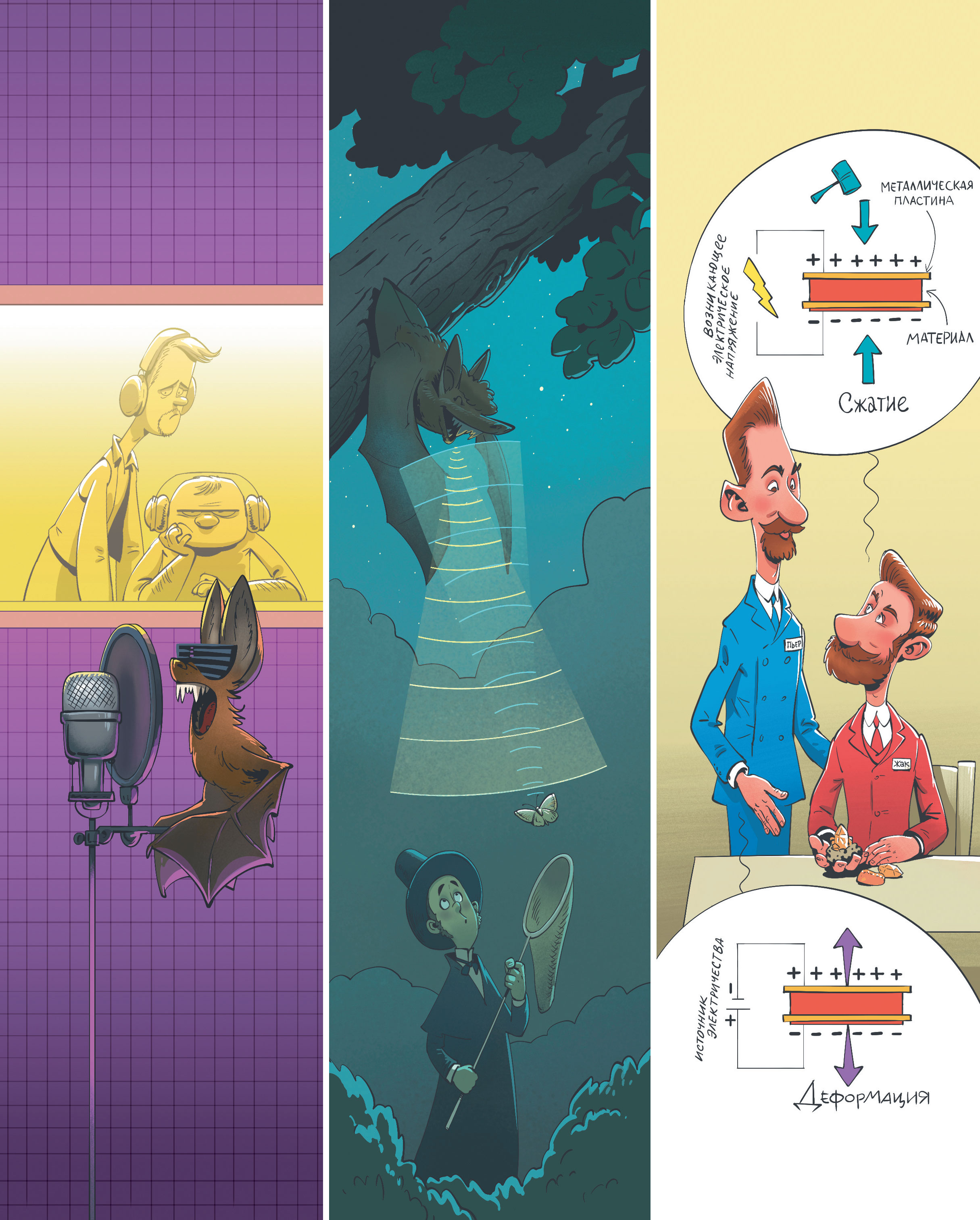 Младший современник Спалланцани, швейцарец Луи Жюрин, решил пойти дальше. Может быть, если дело не в зрении, то оно в слухе? И он попробовал сделать для животных ушные затычки. Бинго! Мыши теряли ориентацию. Спалланцани сперва не поверил. Но после серии опытов (сказать по правде, многие из них нас бы сегодня шокировали) пришлось признать: да, летучие мыши действительно «видят ушами». А вот как именно они видят ушами, учёные узнали куда позже, примерно через 150 лет.