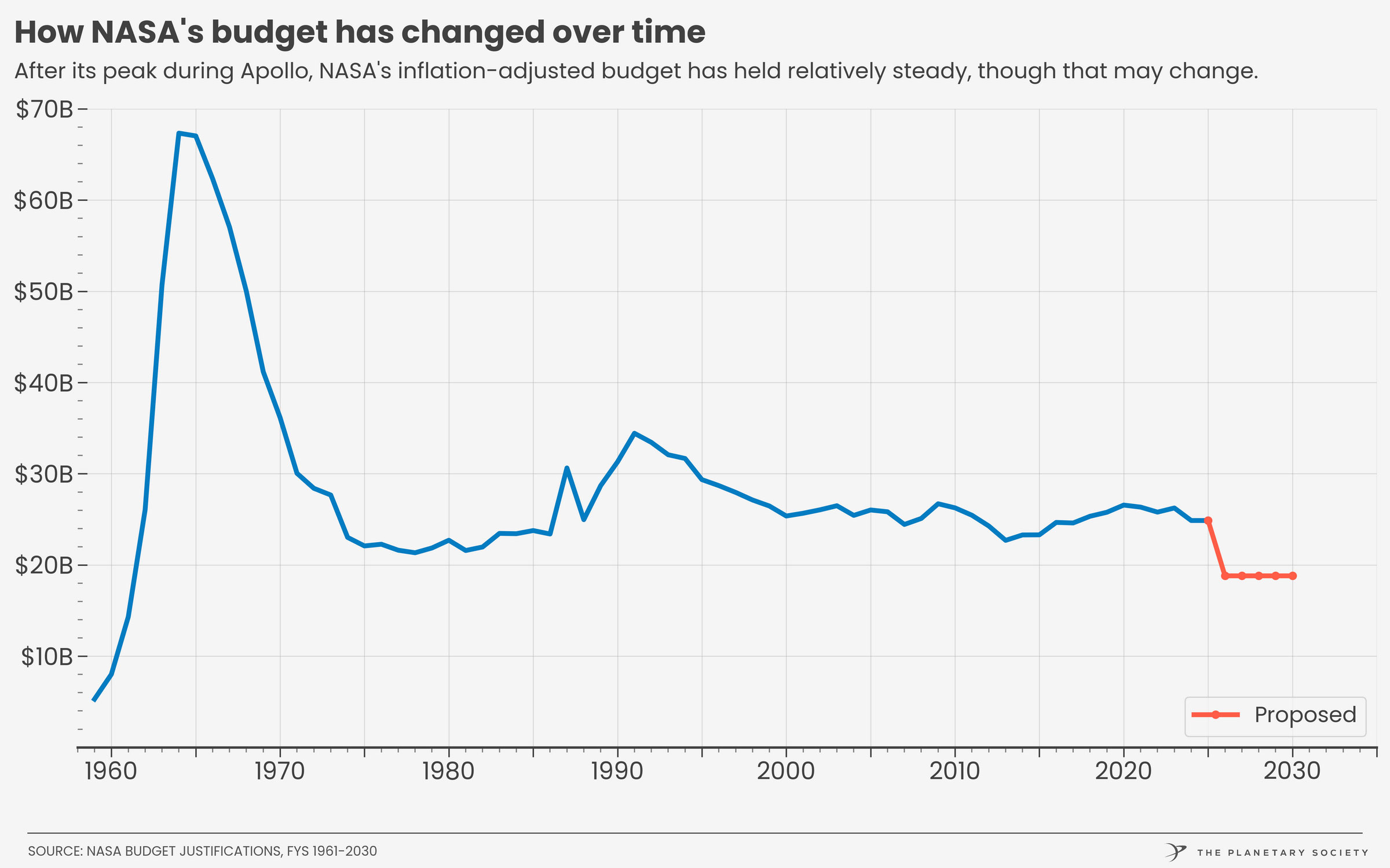 — Сделать самый маленький бюджет за всю историю NASA. Не в абсолютных цифрах, а с точки зрения доли федерального бюджета США. Это какой-то нонсенс, да? Сразу возникает вопрос: а что мы считаем «быть великой снова»?