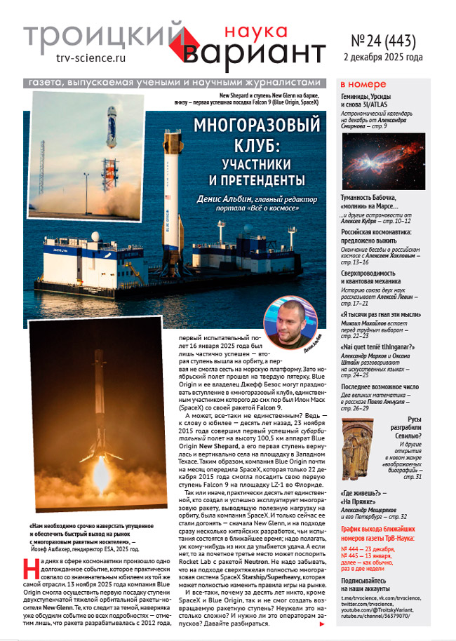 На днях в сфере космонавтики произошло одно долгожданное событие, которое практически совпало со знаменательным юбилеем из той же самой отрасли. 13 ноября 2025 года компания Blue Origin смогла осуществить первую посадку ступени двухступенчатой тяжелой орбитальной ракеты-носителя New Glenn. Те, кто следит за темой, наверняка уже обсудили событие во всех подробностях — отметим лишь, что ракета разрабатывалась с 2012 года, первый испытательный полет 16 января 2025 года был лишь частично успешен...