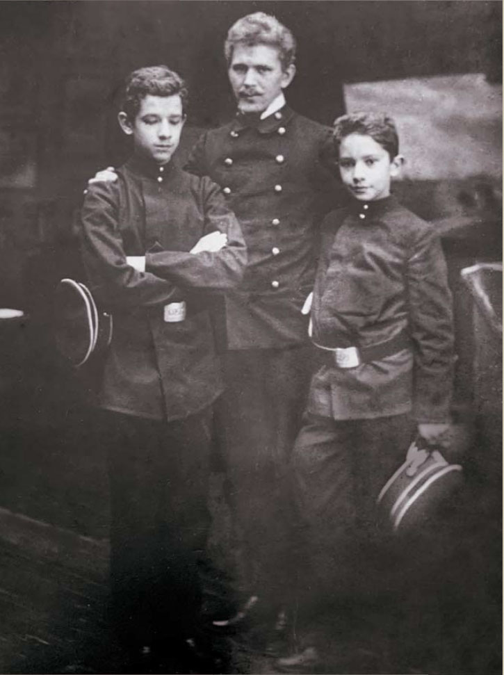Братья Манизеры — Генрих (слева) и Матвей (справа) — с учителем. 1900-е гг. М. Г. Манизер в будущем станет скульптором-монументалистом, членом АХ СССР. СПбФ АРАН. Ф. 985. Оп. 1. Д. 67. Л. 4
