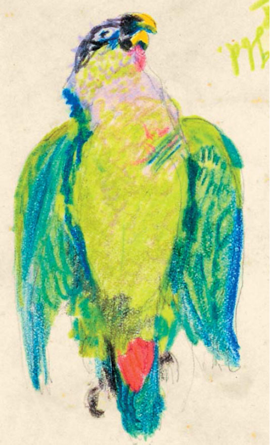 «Maracana Nandalia» (красноспинный ара, Ara maracana, «говорящий!»). Рис. Г. Г. Манизера с заметками автора. СПбФ АРАН. Ф. 985. Оп. 1. Д. 50. Л. 18