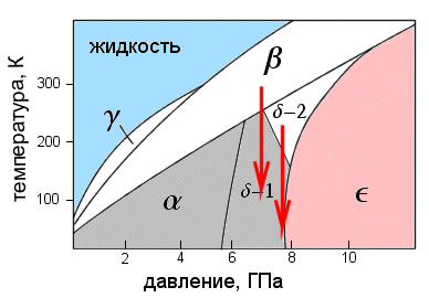 Казалось бы, есть три возможности: при переходе из дельта-фазы в эпсилон, из эпсилон в дзета или же где-то внутри эпсилон-фазы. Однако и теория, и эксперимент долгое время блуждали в этих трех соснах. Теоретические вычисления вначале предсказывали магнитный коллапс при эпсилон-дзета-переходе, затем предпочтения сместились внутрь эпсилон-фазы, и наконец, совсем недавние вычисления указывают на то, что вся эпсилон-фаза уже должна быть немагнитной, т. е. магнитный коллапс должен произойти при еще более низких давлениях. На последнюю возможность косвенно указывали также и экспериментальные данные.