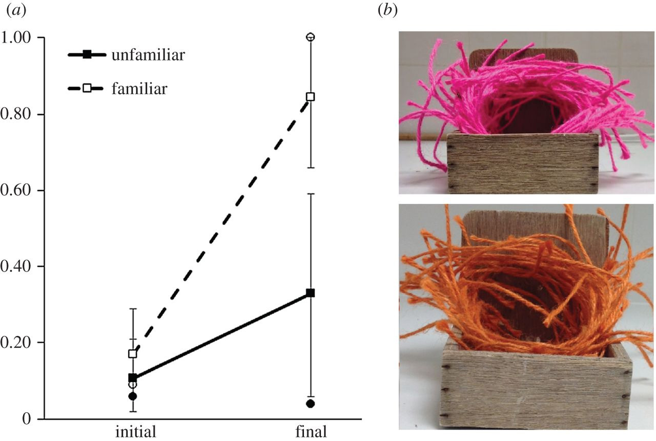 Источник: Lauren M. Guillette, Alice C. Y. Scott and Susan D. Healy. Social learning in nest-building birds: a role for familiarity // Proceedings of the Royal Society B. 2016. V. 283. P. 20152685.