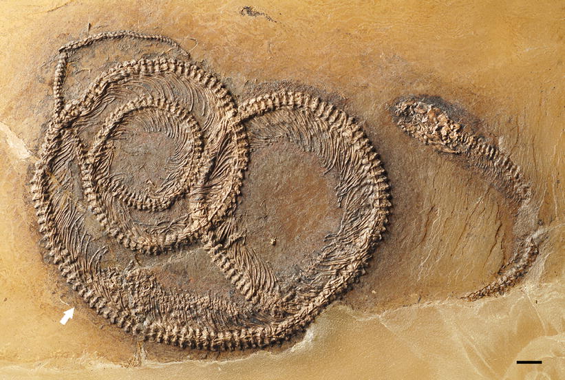Немецкие палеонтологи сделали уникальную находку в эоценовых отложениях карьера Мессель (Германия). Они обнаружили змею, в желудке которой находится только что (на тот момент) проглоченная ею ящерица. Ящерица же, перед тем как стать жертвой змеи, успела закусить насекомым. Таким образом, в руки ученых попали сразу три звена древней пищевой цепи.