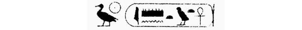 3) Вертикальная черта при знаке солнца Ра встречается еще один раз — в имени Амон-Ра; еще в нескольких случаях диск используется без черты. Можно предположить, что черта сопровождает диск только в именах богов (но не фараонов). С другой стороны, три вертикальных черты встречаются в титуле «владелец корон»; это наводит на мысль, что три черты передают множественность, однако здесь нет возможности проверить эту гипотезу.