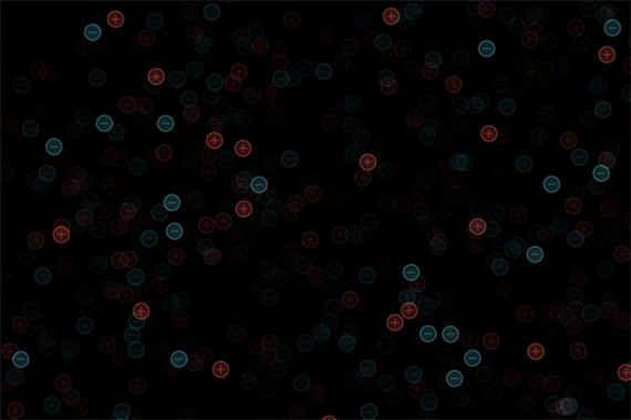 Рис. 1. Плазма, состоящая из не связанных заряженных частиц. Так как у плазмы есть некоторая температура, частицы испытывают тепловые колебания