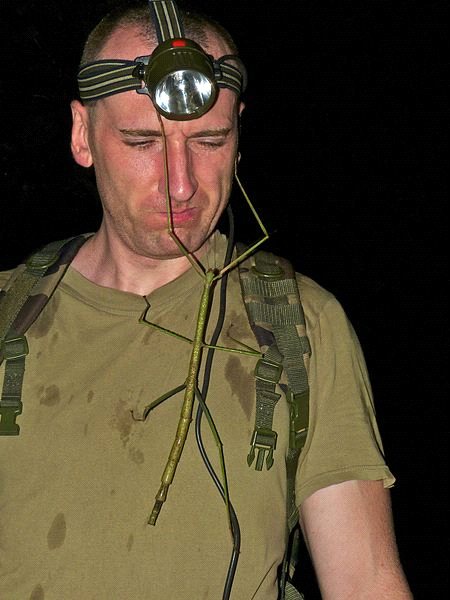 Одно из самых крупных современных насекомых — азиатский палочник из рода Phobaeticus. Вытянув ноги, некоторые палочники этого рода могут занять отрезок длиной около 60 см, что лишь ненамного меньше, чем размах крыльев самых крупных ископаемых насекомых каменноугольного и пермского периодов. Сейчас среди летающих насекомых нет таких гигантов, возможно отчасти в связи с тем, что в этом размерном классе с полетом успешнее справляются птицы и летучие мыши. В каменноугольном периоде не было ни птиц, ни летучих мышей, ни птерозавров (которые возникли в триасе и стали первыми летающими позвоночными, а вымерли в конце мела, вероятно не выдержав конкуренции с птицами). Изображение © Bernard Dupont с сайта flickr.com