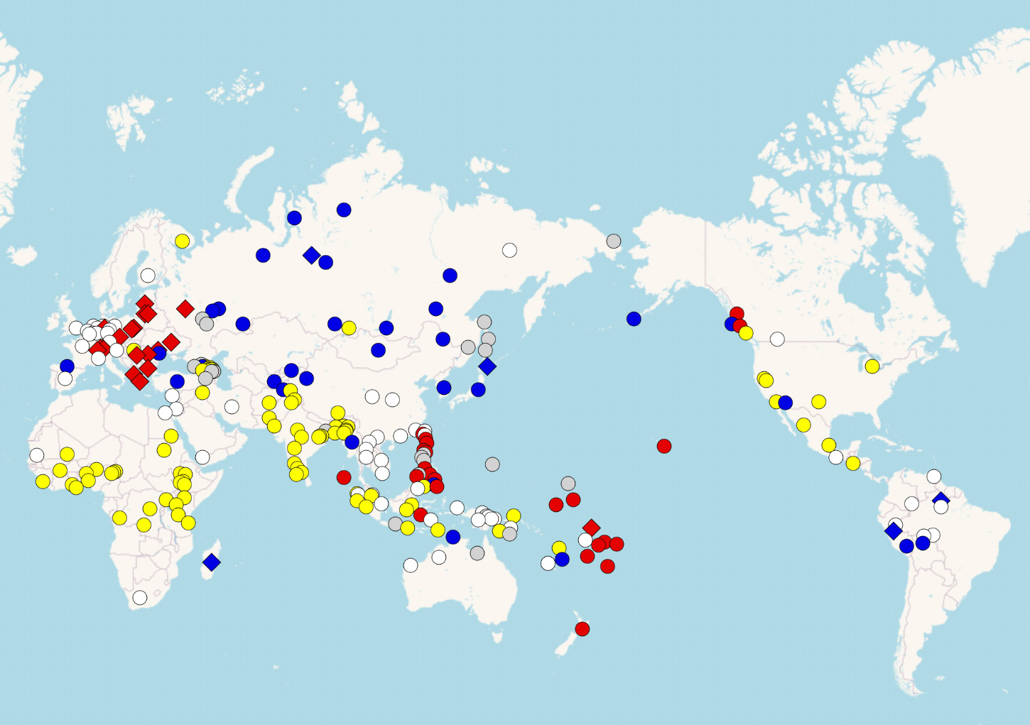 Такая редупликация имеет много примеров в языках мира — ее много, например в языках Африки и на полуострове Индостан (см. карту Всемирного атласа языковых структур, где выражение редупликации на существительных отмечено желтым).