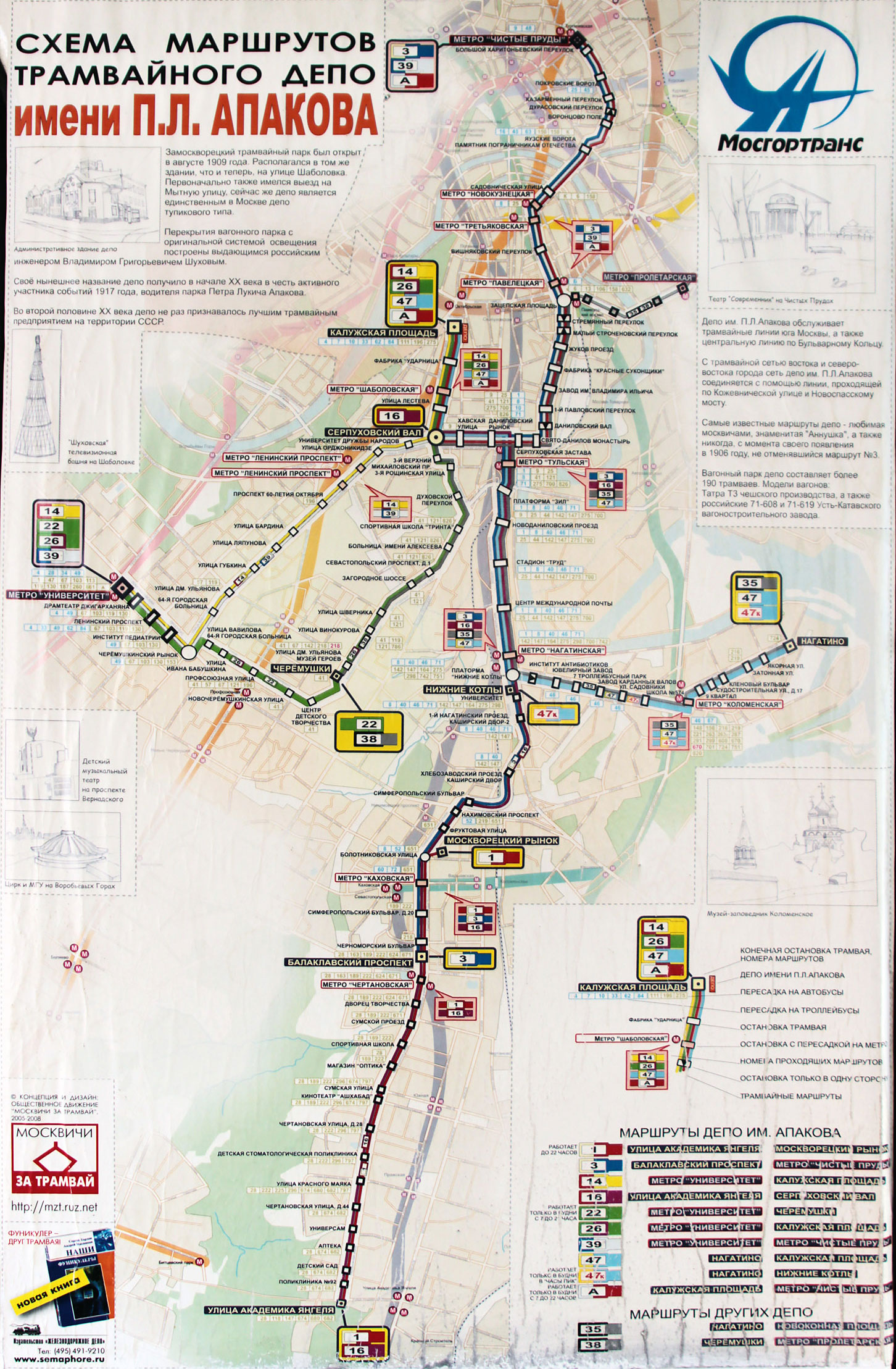 Цветные фонари сохранялись на крышах московских трамваев до 1960-х годов. На современных трамваях номер маршрута на табло виден издалека в любое время суток и при любой погоде, а потому «в настоящее время в таких фонарях необходимости нет», объясняет московский Дептранс. На самом деле даже после исчезновения сигнальных фонарей та же система цветового кодирования продолжала использоваться ещё несколько десятилетий — это можно заметить по карте трамвайных маршрутов 2010 года (на ней вы найдёте несколько маршрутов из условия задачи). А вот на современной официальной карте кодов из двух цветов больше нет — каждому маршруту приписан свой уникальный оттенок подобно линиям метро.