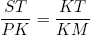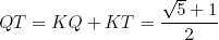 Действительно, будем считать для простоты, что PQ = 1. Тогда ST = KQ = 1. Обозначим KT через x. Тогда PK = PM = MQ = x, KM = 1 – x. Следовательно, . Преобразовывая это равенство, мы получаем соотношение x2 + x – 1 = 0, откуда находим