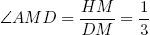 Будем считать, что все стороны тетраэдра ABCD равны 1. Пусть M — середина стороны BC, DH — высота (рис. 4). Тогда точка H является центром грани ABC, а значит, лежит на отрезке AM и делит его в отношении 2 : 1, считая от точки A. Учитывая, что AM = DM, отсюда следует, что cos. То есть двугранный угол тетраэдра равен